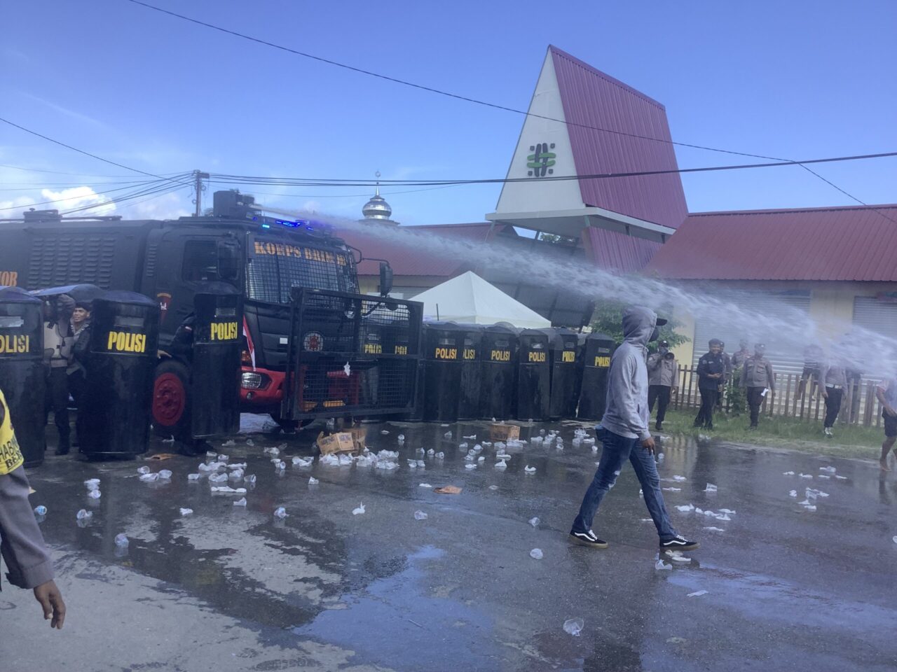 Upaya Preemtif dan preventif sudah dilakukan. Aparat gabungan mulai melihat harus dilakukan upaya lain dalam mengamankan kotak suara. Massa semakin tidak terkendali. Ada massa yang membawa sajam dan panah, serta adanya lemparan kearah petugas. Massa kemudian dihalangi oleh anggota Dalmas dan Binmas membentuk garis pengamanan pagar betis. Massa mendorong aparat dengan brutal.
