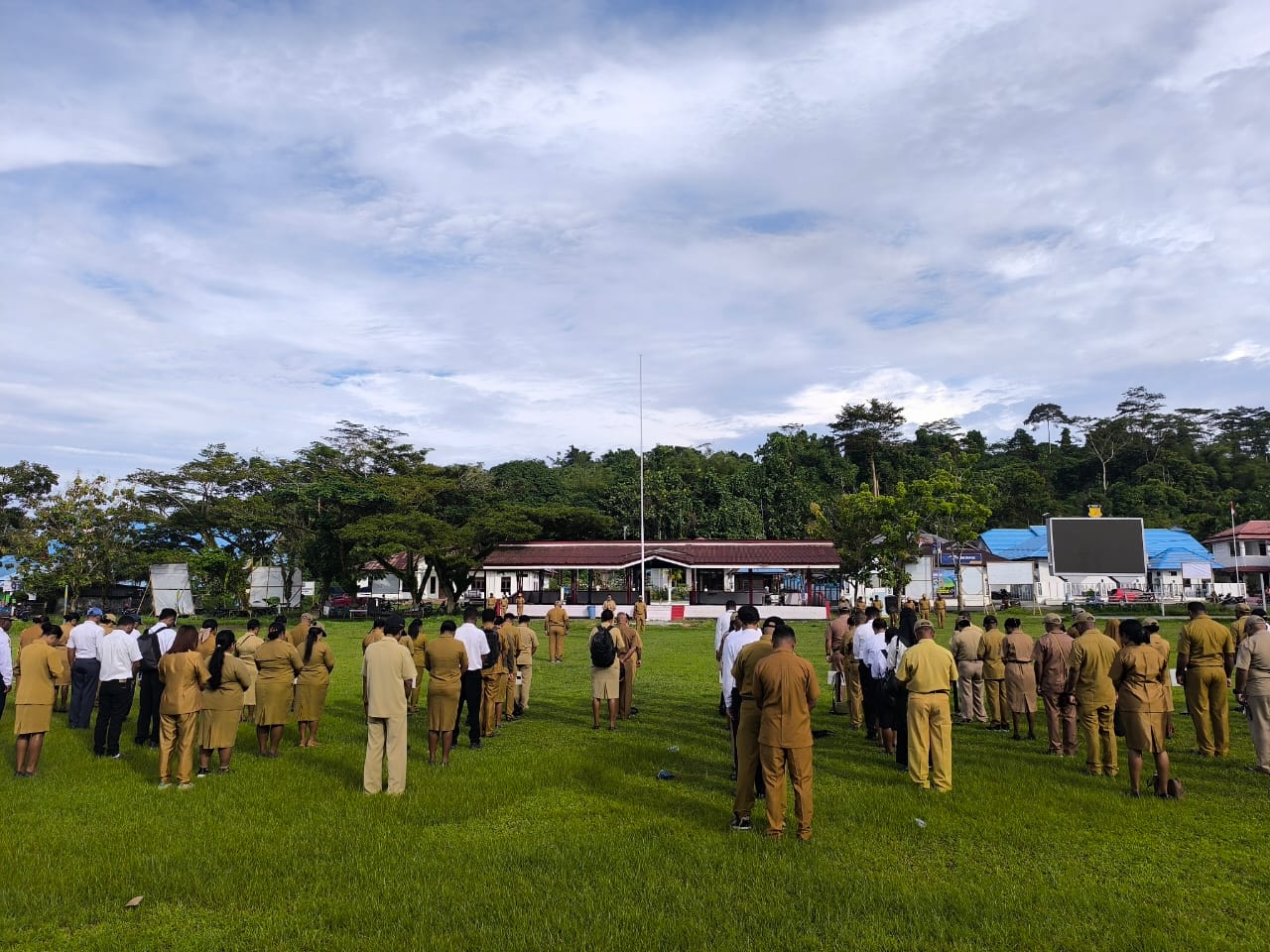 “Saya ucapkan terima kasih kepada pimpinan OPD, ASN, dan tenaga PPPK yang hadir pagi ini. Jangan sampai kita sebagai ASN hanya hadir saat ada Bupati, dan menghilang ketika beliau tidak ada. Kalau kita ingin daerah ini maju, mari kita bekerja dengan tulus, bukan karena ingin dilihat oleh pimpinan,” tegasnya.