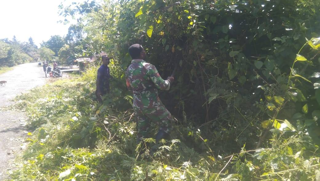 Saat bergotong-royong, disela kegiatannya dijelaskan Babinsa bahwa, Kegiatan pembersihan jalan dan lingkungan sekitarnya ini merupakan upaya babinsa bersama aparat kampung dan juga seluruh warga binaannya, dalam mewujudkan kebersihan lingkungan disekitar kita.
