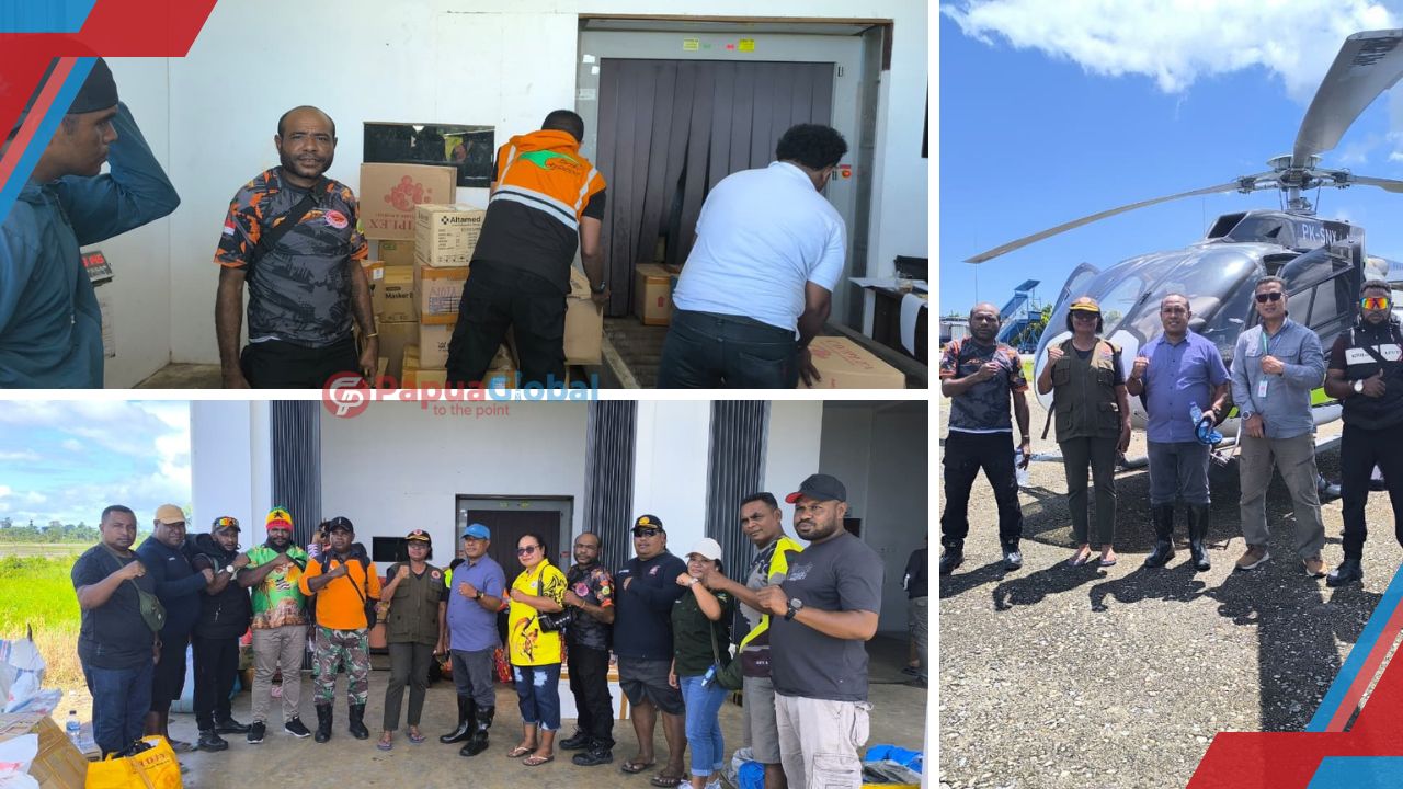 Penyaluran bantuan sebelumnya sempat tertunda akibat cuaca buruk serta kondisi bandara yang terendam banjir. Namun, hari ini tim tanggap darurat berhasil mengirimkan logistik menggunakan helikopter.