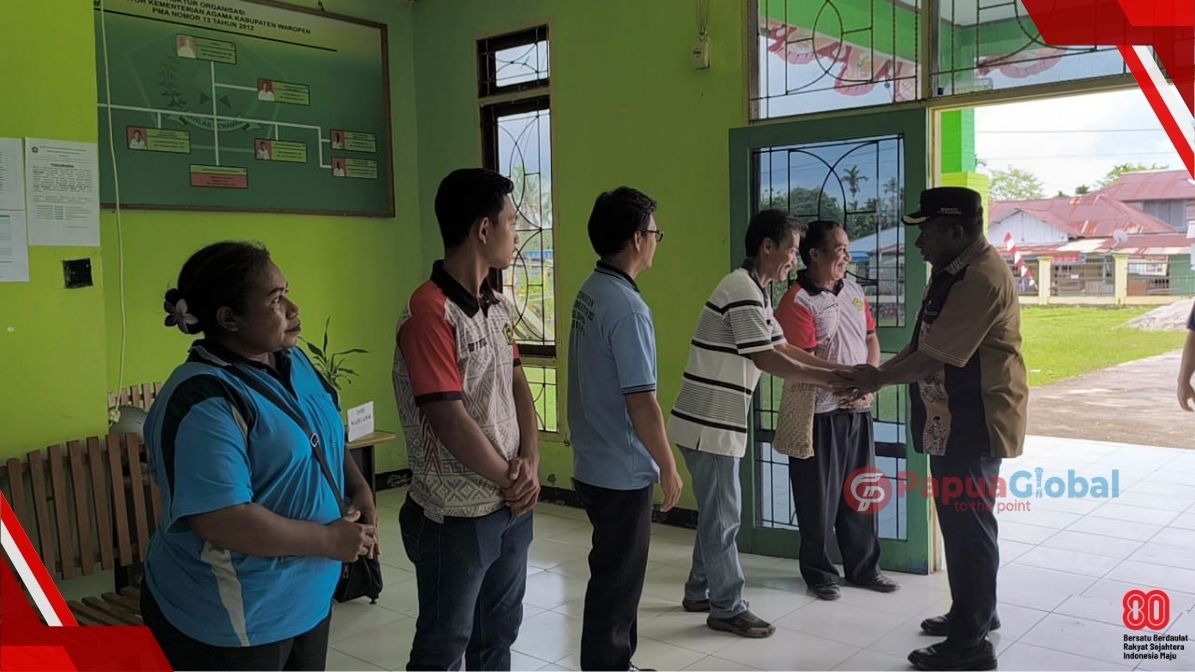 Waropen, PapuaGlobal.Com | Bupati Waropen, Drs. Fransiscus Xaverius Mote, M.Si, melakukan kunjungan kerja ke Kantor Kementerian Agama Kabupaten Waropen, Jumat (08/08/2025).