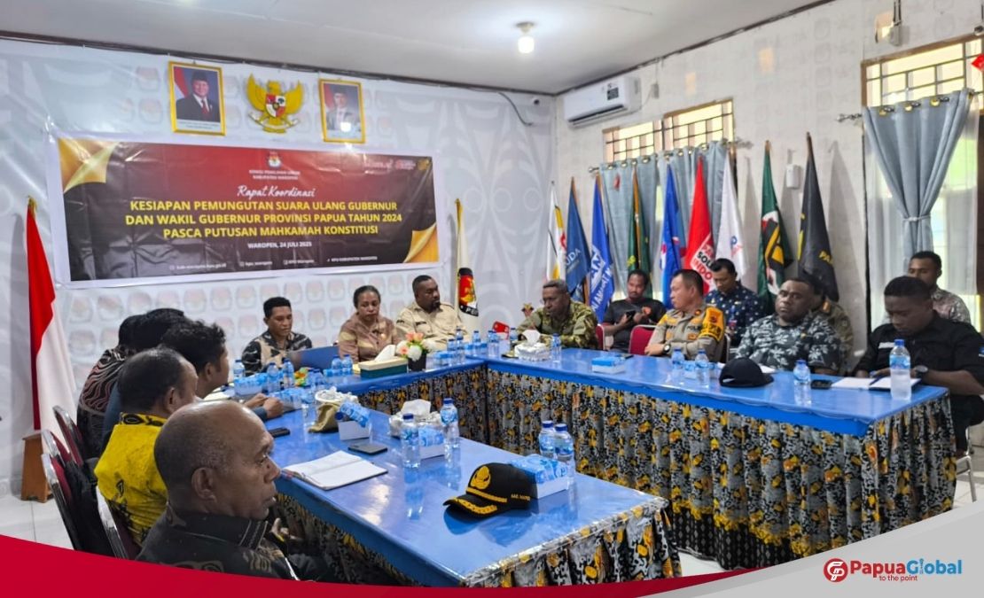 PapuaGlobal.Com | Waropen – Bupati Waropen Drs. Fransiscus Xaverius Mote, M.Si menghadiri Rapat Koordinasi Kesiapan Pemungutan Suara Ulang (PSU) Pemilihan Gubernur dan Wakil Gubernur Provinsi Papua Tahun 2024 yang digelar sebagai tindak lanjut dari putusan Mahkamah Konstitusi (MK).