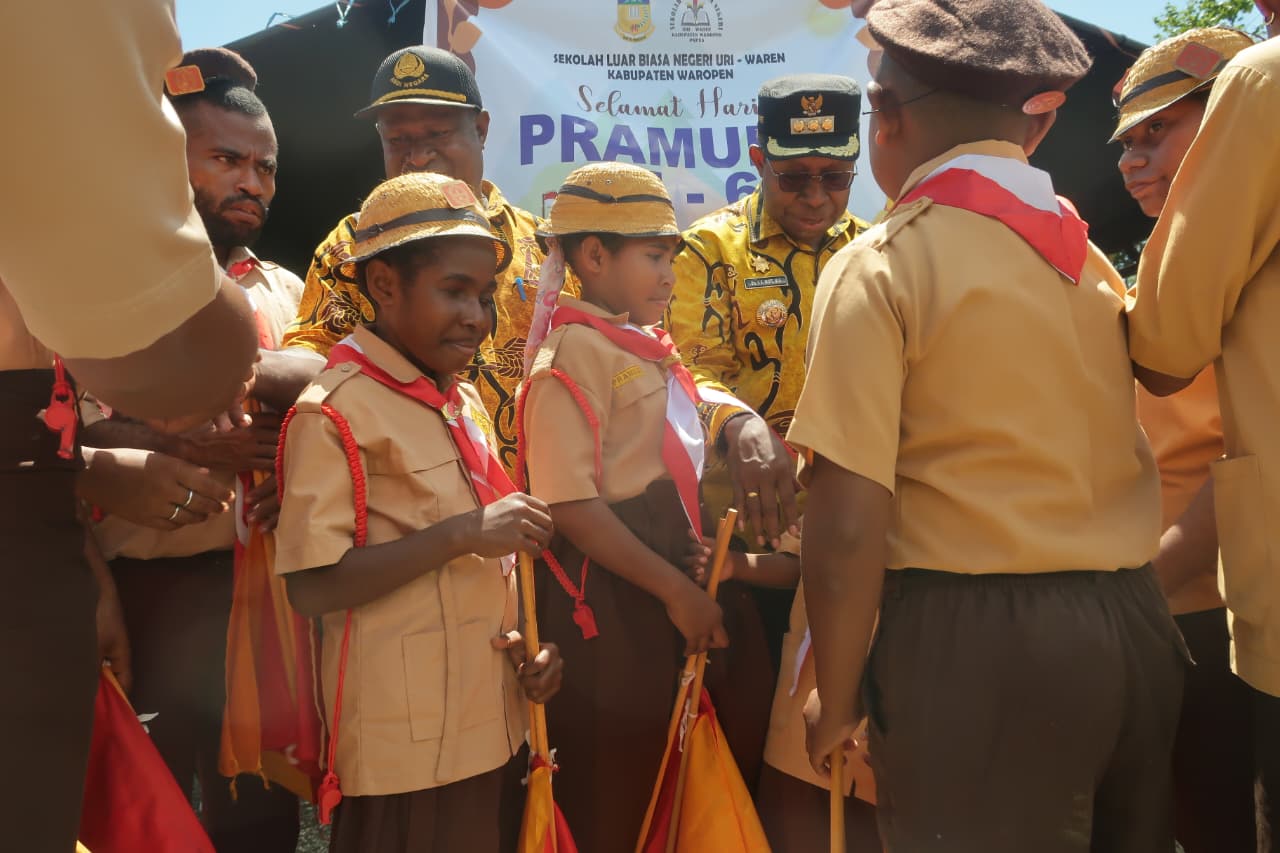 Waropen, 14 Agustus 2025 | PapuaGlobal.Com – Bupati Waropen, Drs. Fransiscus Xaverius Mote, mengunjungi Sekolah Luar Biasa (SLB) Negeri Waren pada Kamis (14/8) dengan penuh perasaan. Dalam kesempatan tersebut, Bupati Mote terlihat sangat emosional dan bahkan meneteskan air mata saat memberikan semangat dan motivasi kepada anak-anak yang memiliki kebutuhan khusus.