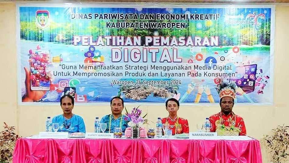 WAROPEN-Suaraindonesia1.com. Dinas Pariwisata Dan Ekonomi Kreatif Kabupaten Waropen melaksanakan Kegiatan Pelatihan Pemasaran Digital bertempat Aula Hotel Alfonso Widuri. Jumat, (27/09/2024)