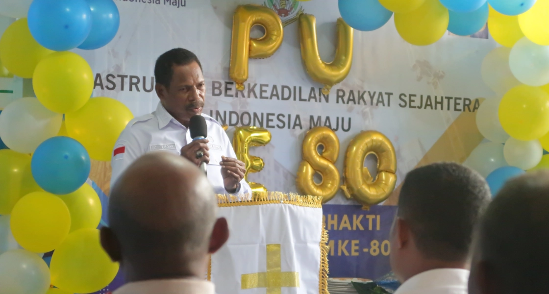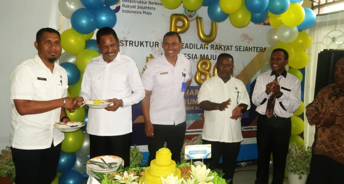 Waropen, PapuaGlobal.Com – Dinas Pekerjaan Umum Kabupaten Waropen bersama Wakil Bupati Kabupaten Waropen Yoel Boari menggelar perayaan puncak Hari Bhakti PU Ke-80, di kawasan perkantoran gedung otonom kampung Nonomi Waropen Bawah, Rabu (3/12/2025).