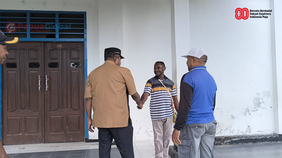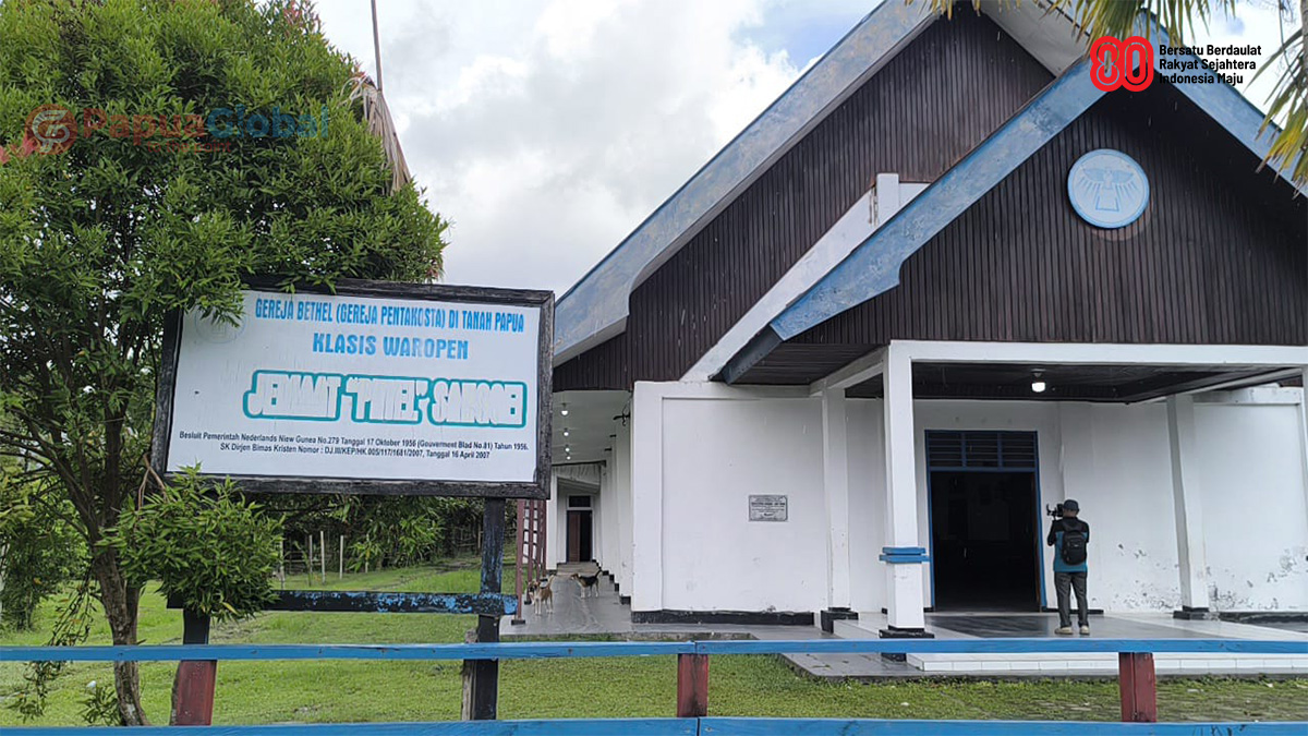 WAROPEN, PapuaGlobal.Com | Bupati Waropen, Drs. Fransiscus Xaverius Mote, M.Si, bersama Asisten II Sekda Waropen dan Kepala Dinas Pariwisata dan Ekonomi Kreatif, melakukan kunjungan langsung ke Gedung Gereja Bethel Gereja Pantekosta di Papua Jemaat Pniel Sanggei Klasis Waropen Kabupaten Waropen, Jumat (08/08/2025).
