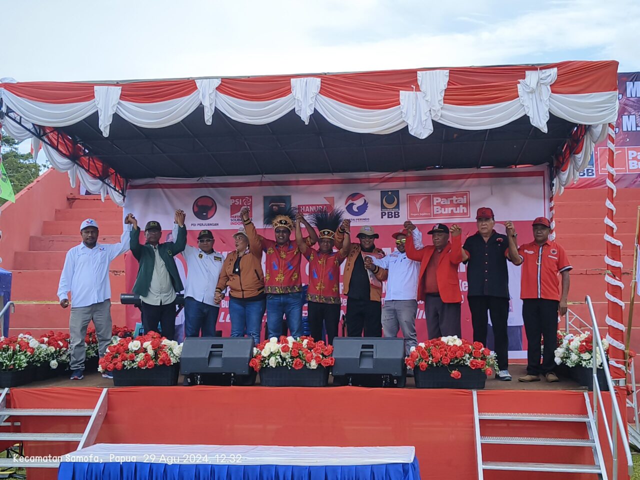 Tujuh Partai Pengusung Herry-Kerry saat mendeklarasikan diri di hadapan para simpatisan di Lapangan Petrus Kafiar, Kamis (29/8).