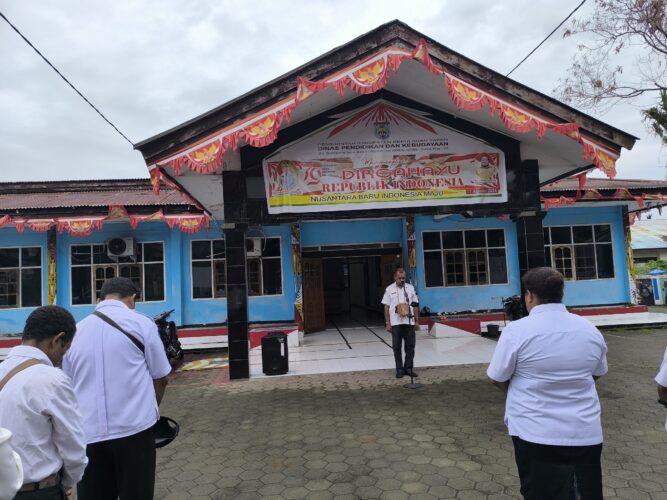 KEPULAUAN YAPEN -Dilaksanakan apel pagi di lingkungan Dinas Pendidikan dan Kebudayaan Kabupaten Kepulauan Yapen, Kegiatan apel pagi dan sore rutin dilaksanakan setiap hari Senin, Selasa, Rabu, Kamis dan Jum’at pukul 07.30 WIB di halaman Kantor Dinas Pendidikan dan Kebudayaan Kabupaten Kepulauan Yapen.
