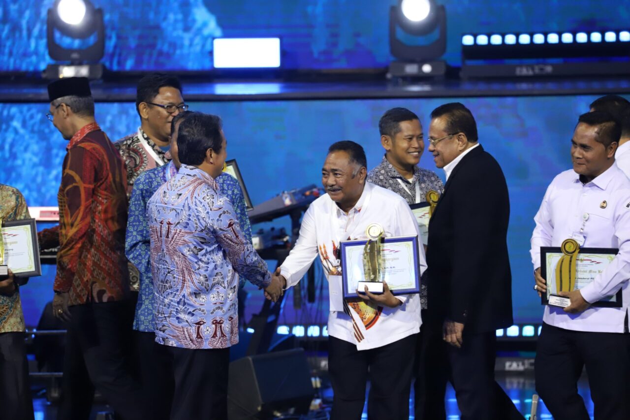Kadis Perikanan Kabupaten Biak Numfor Effendy Igirisa saat menerima penghargaan sebagai Tokoh Pendorong Ekonomi Masyarakat Kelautan dan Perikanan melalui program Kampung Nelayan Modern (Kalamo) di Biak Numfor, Kamis (26/9) malam di Sentul Jawa Barat.