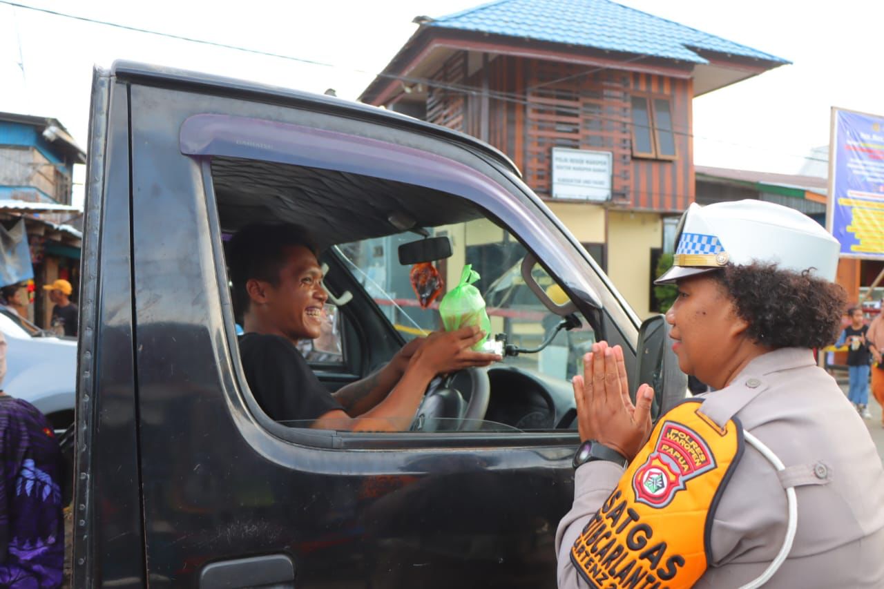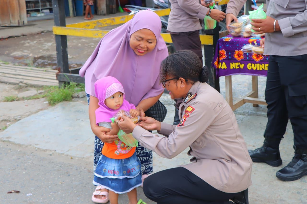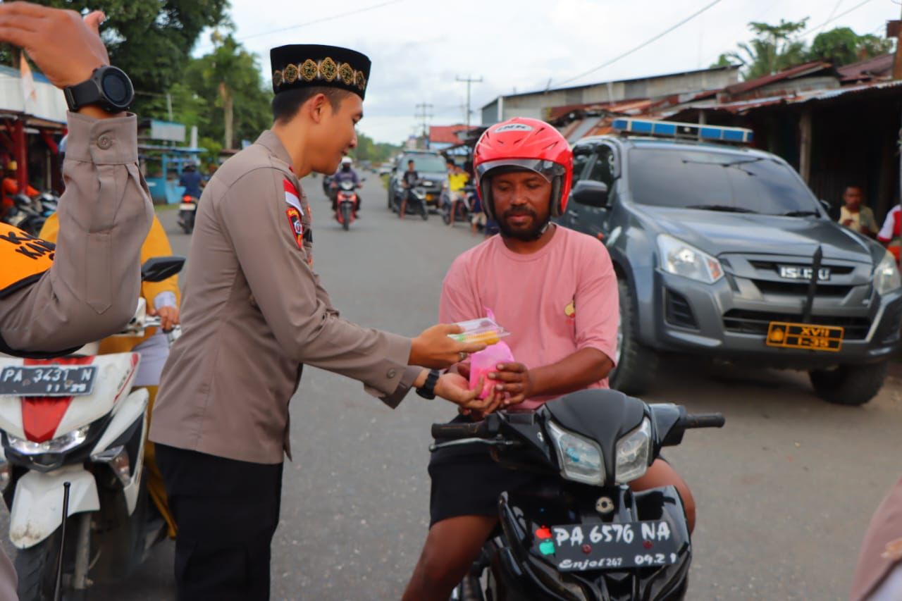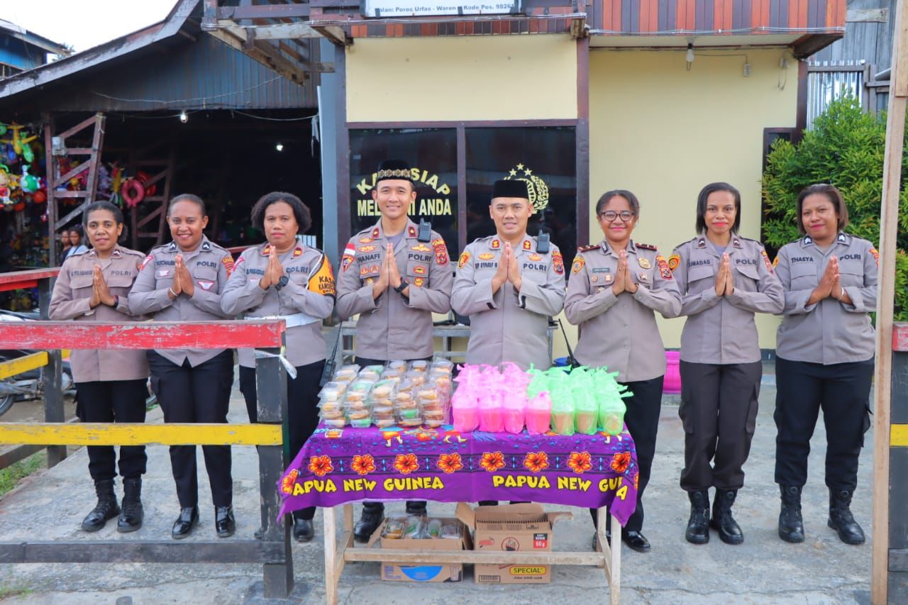 WAROPEN, PapuaGlobal,com-Sebagai wujud meningkatkan keimanan dan ketaqwaan serta kepedulian terhadap sesama di Bulan Ramadhan, Kapolres Waropen AKBP. Iip Syarif Hidayat, S.H., yang didampingi oleh Wakapolres Waropen Kompol. M. B. Y. Hanafi, S.H., S.I.K., M.H., Kabag Ren AKP. Arip Marianto, S.E., M.M., Kasat Lantas Iptu. Novita Fonataba dan Kasat Intelkam Ipda. Angela Ripka Hawar, S.Sos., M.I.P, berbagi takjil Ramadhan Berkah 1446 H bersama Polwan Polres Waropen didepan Pasar Urfas, Distrik Urei Faisei, Jumat (21/03/2025).