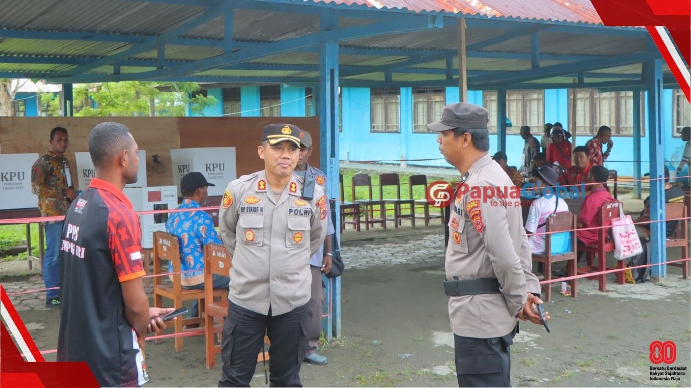 WAROPEN, PapuaGlobal.Com | Kapolres Waropen AKBP. Iip Syarif Hidayat, S.H., meninjau secara langsung pelaksanaan Pemungutan Suara Ulang (PSU) Pemilihan Gubernur dan Wakil Gubernur Papua Tahun 2024 di sejumlah Tempat Pemungutan Suara (TPS) yang tersebar di wilayah Kabupaten Waropen, Rabu (06/08/2025).
