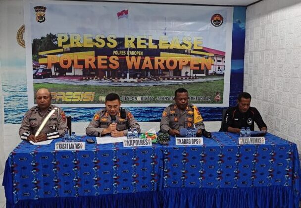WAROPEN-Papuaglobal.com. Kapolres Waropen AKBP. Iip Syarif Hidayat, S.H., didampingi oleh Kabag Ops AKP. Frits B. Arera, S.Sos., Kasi Humas Ipda. Elam Alex Pandori, Kaur Bin Ops Sat Lantas Aipda. Deddy Ronsumbre serta dihadiri oleh ± 45 peserta, melaksanakan Press Release Hasil Operasi Keselamatan Cartenz 2025 Polres Waropen di Ruang Video Conference Polres Waropen, Rabu (26/02/2025).