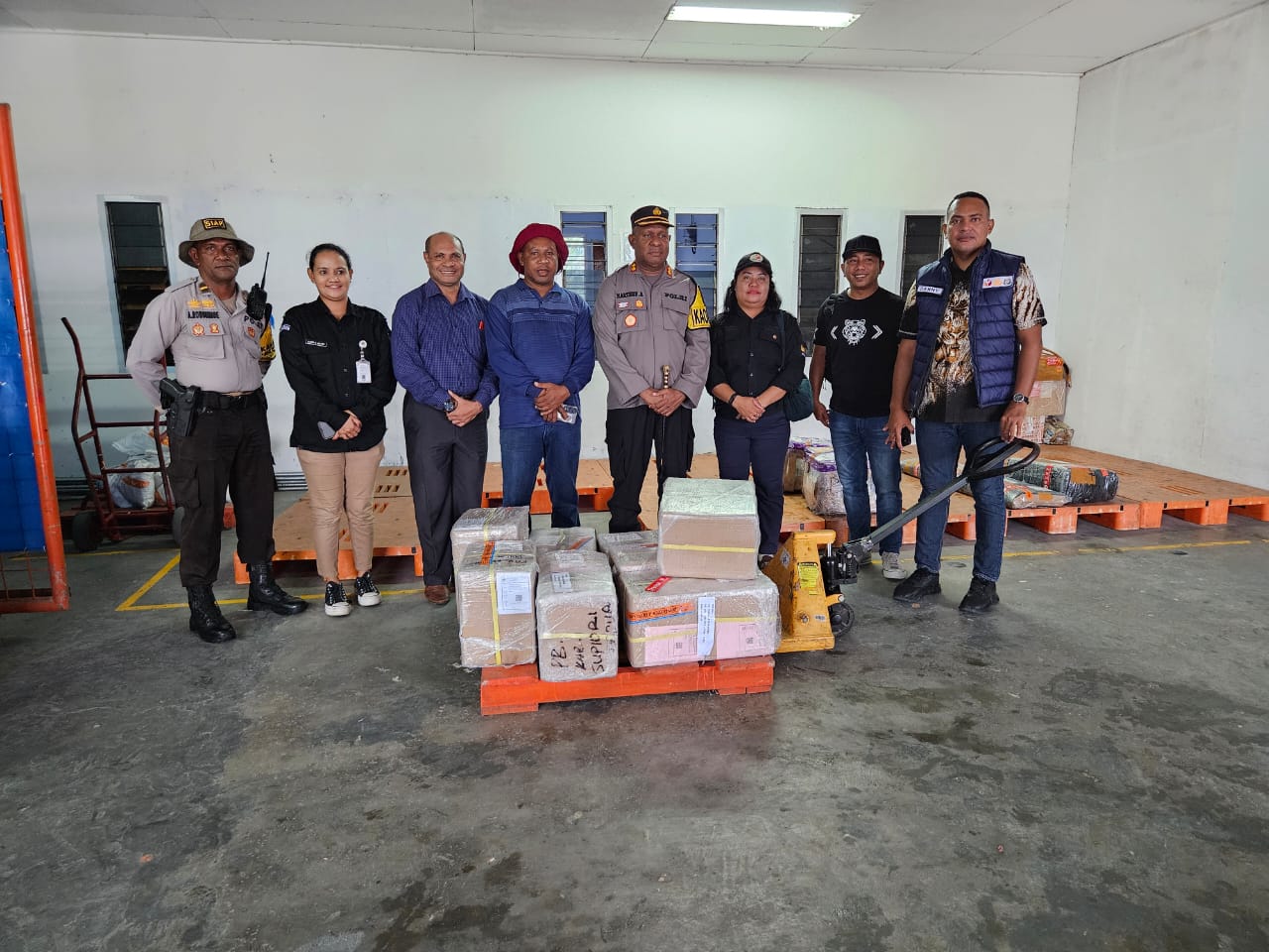 SUPIORI, Papuaglobal.com – Sentra Gakkumdu Kabupaten Supiori, bersama Bawaslu Supiori dan Polres Supiori, melakukan pengawalan ketat terhadap distribusi surat suara yang diterima oleh KPU Supiori di Kargo Bandara Biak pada Rabu (23/10). Pengawalan ini dilakukan dengan tujuan memastikan keamanan dan kelancaran proses distribusi jelang pemilu Kepala Daerah, 27 November 2024 mendatang.