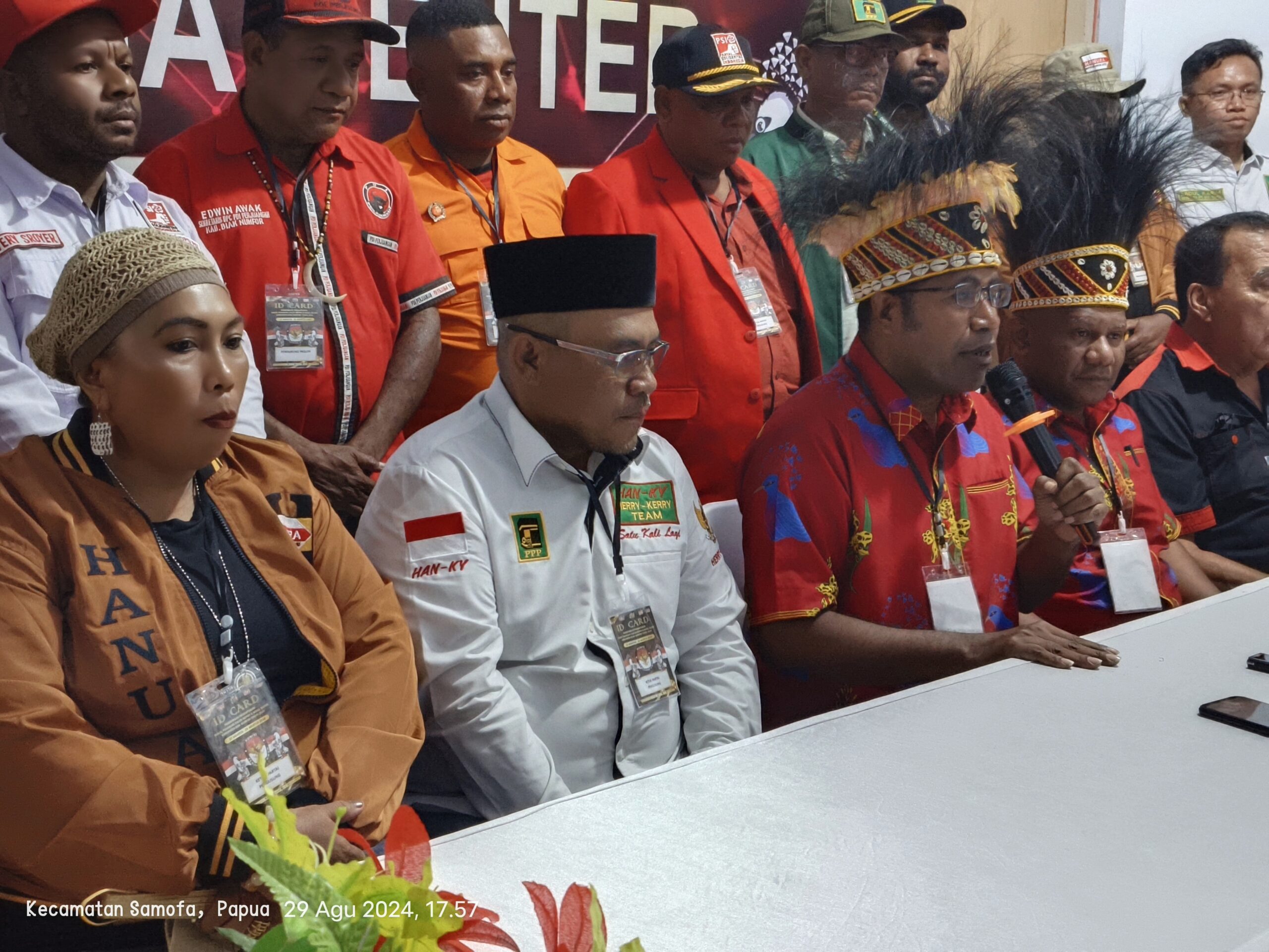 Pers Confrence Pasangan Calon Herry-Kerry bersama Para pimpinan dan sekretaris Partai Politik pengusung, usai diterima berkas pendaftarannya oleh KPU Biak Numfor, Kamis (29/8).