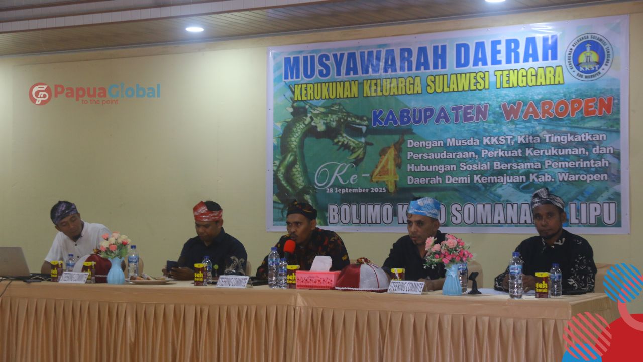 Waropen, PapuaGlobal.Com | Musyawarah Daerah (Musda) ke-IV Kerukunan Keluarga Sulawesi Tenggara (KKST) Waropen berlangsung meriah pada Minggu (28/9) di Aula Hotel Elfonso Widuri. Musda dibuka langsung oleh pimpinan KKST periode sebelumnya, dengan nuansa kekeluargaan yang begitu kental meski hadir secara daring.