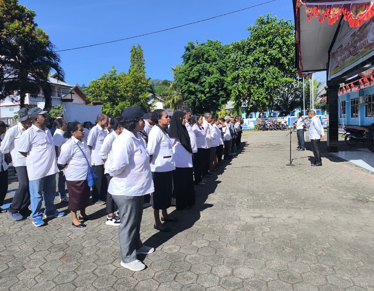 KEPULAUAN YAPEN-Plh Kepala Dinas Pendidikan Dan Kebudayaan Yapen, Oktovianus Ayorbaba, SE, S.Sos., M.Si. Menjadi Pembina apel rabu sore di lingkungan Dinas Pendidikan dan Kebudayaan Kabupaten Kepulauan Yapen. Rabu, (11/09/2024).