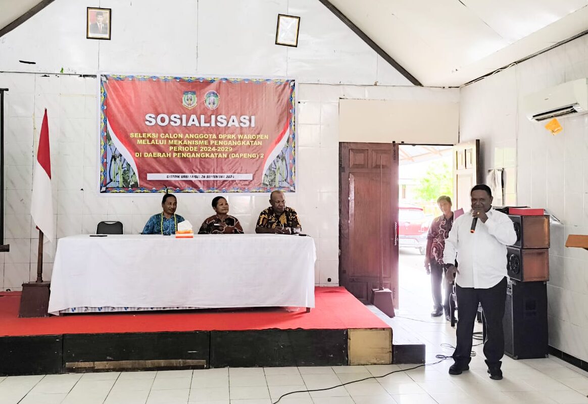 WAROPEN -Panitia seleksi (Pansel) anggota Dewan Perwakilan Rakyat Kabupaten (DPRK) Waropen mengadakan kegiatan Sosialisasi Seleksi Calon Anggota DPRK Waropen Periode 2024-2029 2 di Daerah Pengangkatan 2 bertempat di Aula Hotel Merpati Waropen.