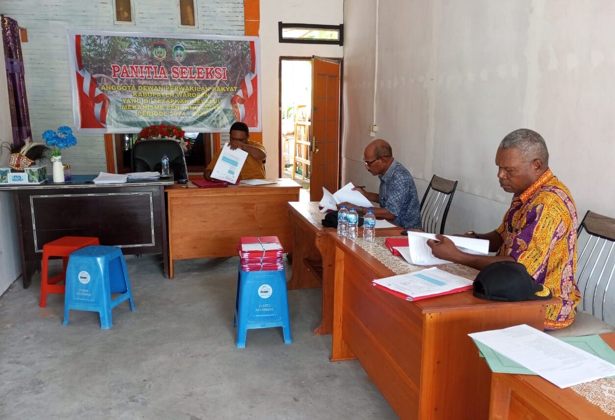 WAROPEN-Panitia Seleksi (Pansel) DPRK Kabupaten Waropen telah mengumumkan hasil seleksi calon anggota DPRK Kabupaten Waropen yang lulus Verifikasi dan Validasi berkas administrasi di Kabupaten Waropen. Jumat (25/10/2024)