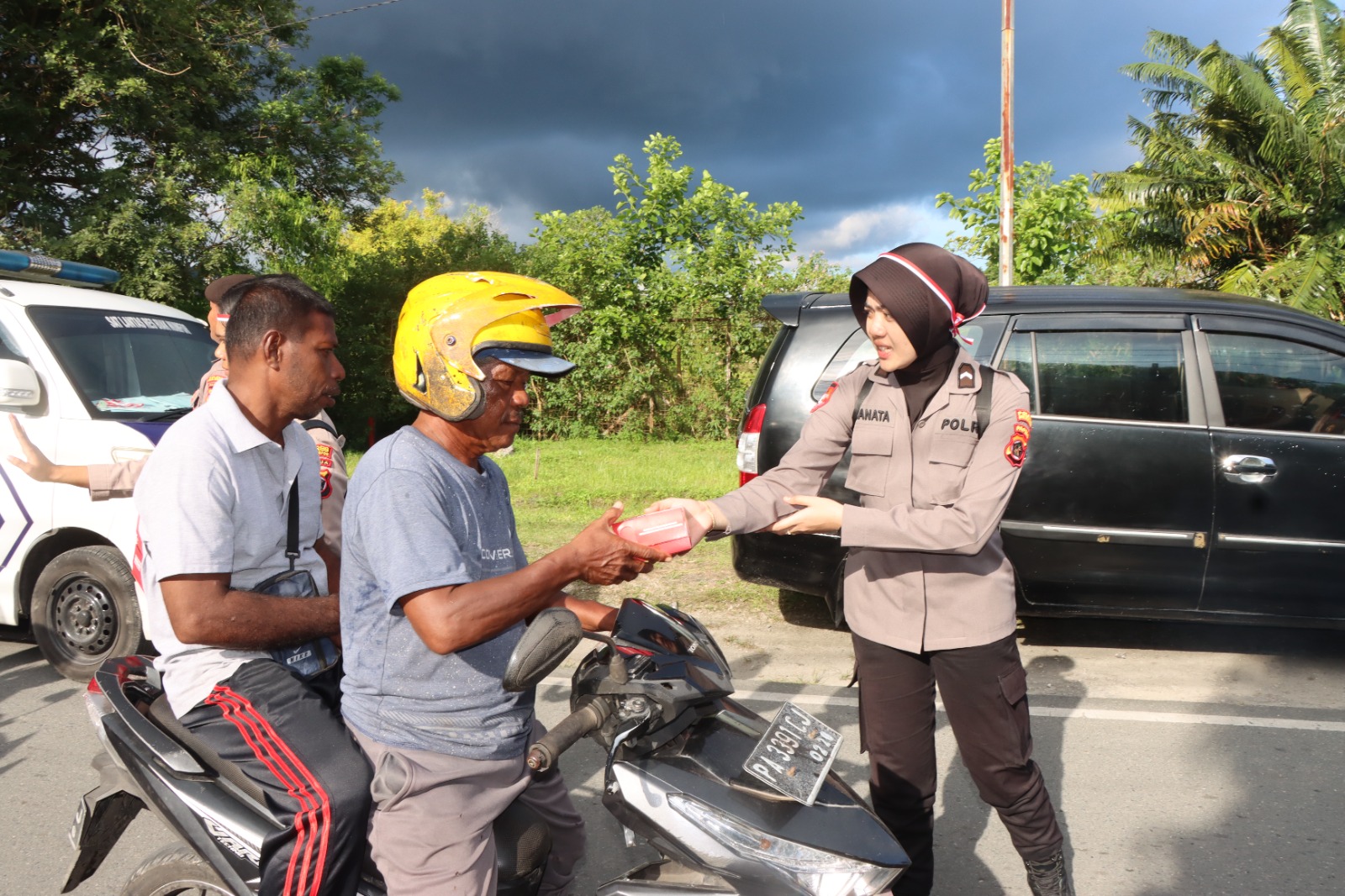 “Kami dalam kegiatan ini membagikan 5000 paket kue kepada masyarakat yang ada di sekitaran kota Biak, adapun tempat-tempat atau sasaran yang kami kunjungi antara lain masyarakat yang berada di pasar, pertokoan, lapangan sepak bola, tempat wisata dan tempat dimana masyarakat berkumpul,” ucap Kabag Ren, Kompol Stella W Suruan.