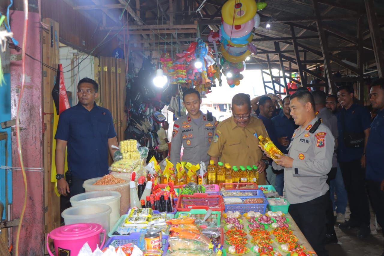 WAROPEN, PapuaGlobal.com-Dalam rangka bentuk pengawasan dan monitoring ketersediaan stok serta kestabilan harga sembako khususnya menjelang Hari Raya Idul Fitri 1446 H, Polres Waropen bersama Dinas Perindagkop Kabupaten Waropen, lakukan Sidak di Pasar Tradisional Urfas, Selasa (25/03/2025).