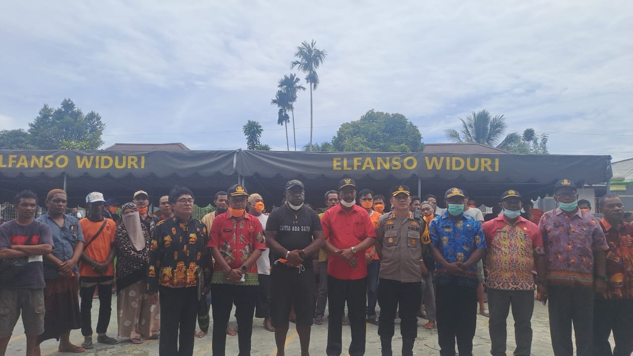 WAROPEN, PapuaGlobal.com-Wakil Bupati Yowel Boari, didampingi Sekda Jailani, A.P., M.Si., Kapolres AKBP. Lip Syarif Hidayat, S.H., serta pimpinan OPD, meninjau langsung lokasi pengungsian korban kebakaran di Pasar Urfas, Kampung Urfas II.