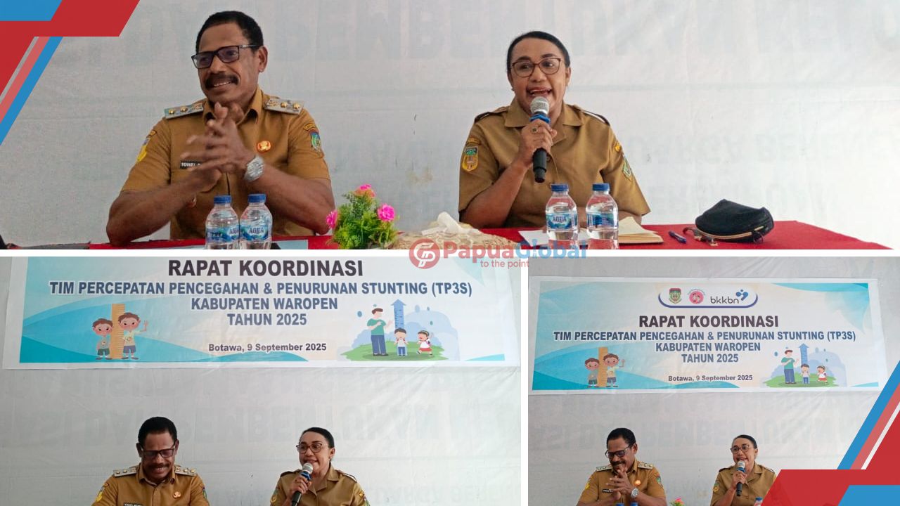 WAROPEN, PapuaGlobal.Com | Dinas BKKBN Kabupaten Waropen menggelar Rapat Koordinasi Tim Percepatan Pencegahan & Penurunan Stunting (TP3S) yang berlangsung di ruang rapat BKKBN Waropen, Selasa (09/09/2025).